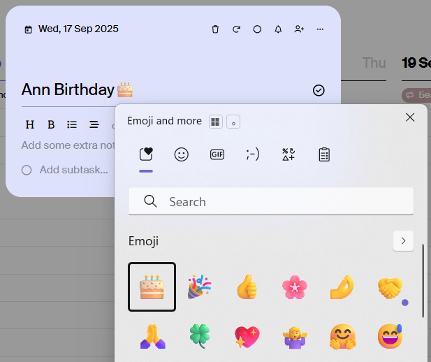 Yes, you can use emojis to mark a task with a special symbol or add a cute touch to the task name.😉